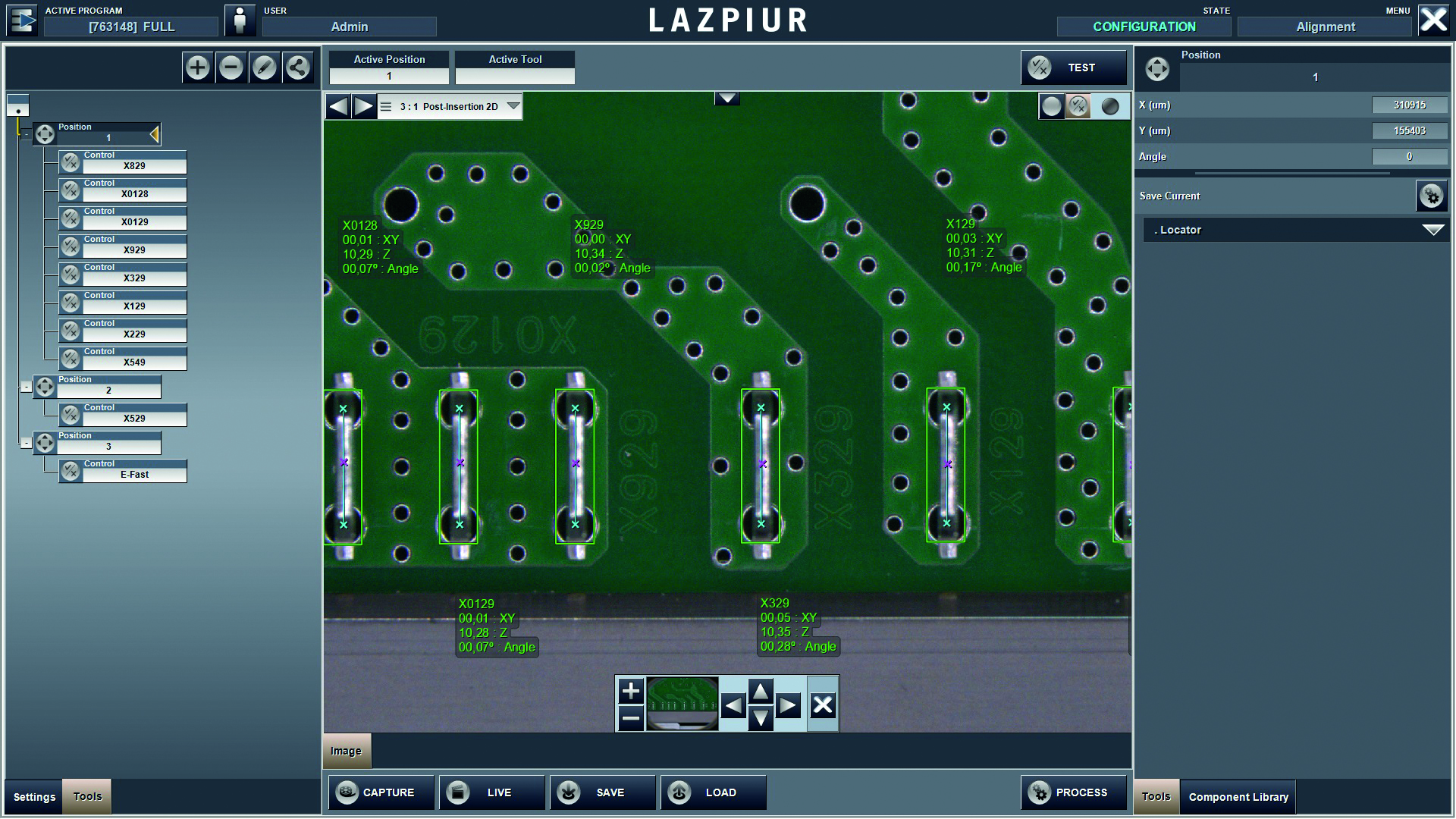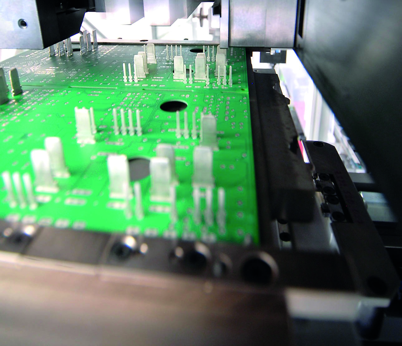 This machine supports a maximum insertion area of 380 mm X- and 380-mm Y, complemented with a force cell in the insertion axis and capability to insert at 360º with servo activated table.