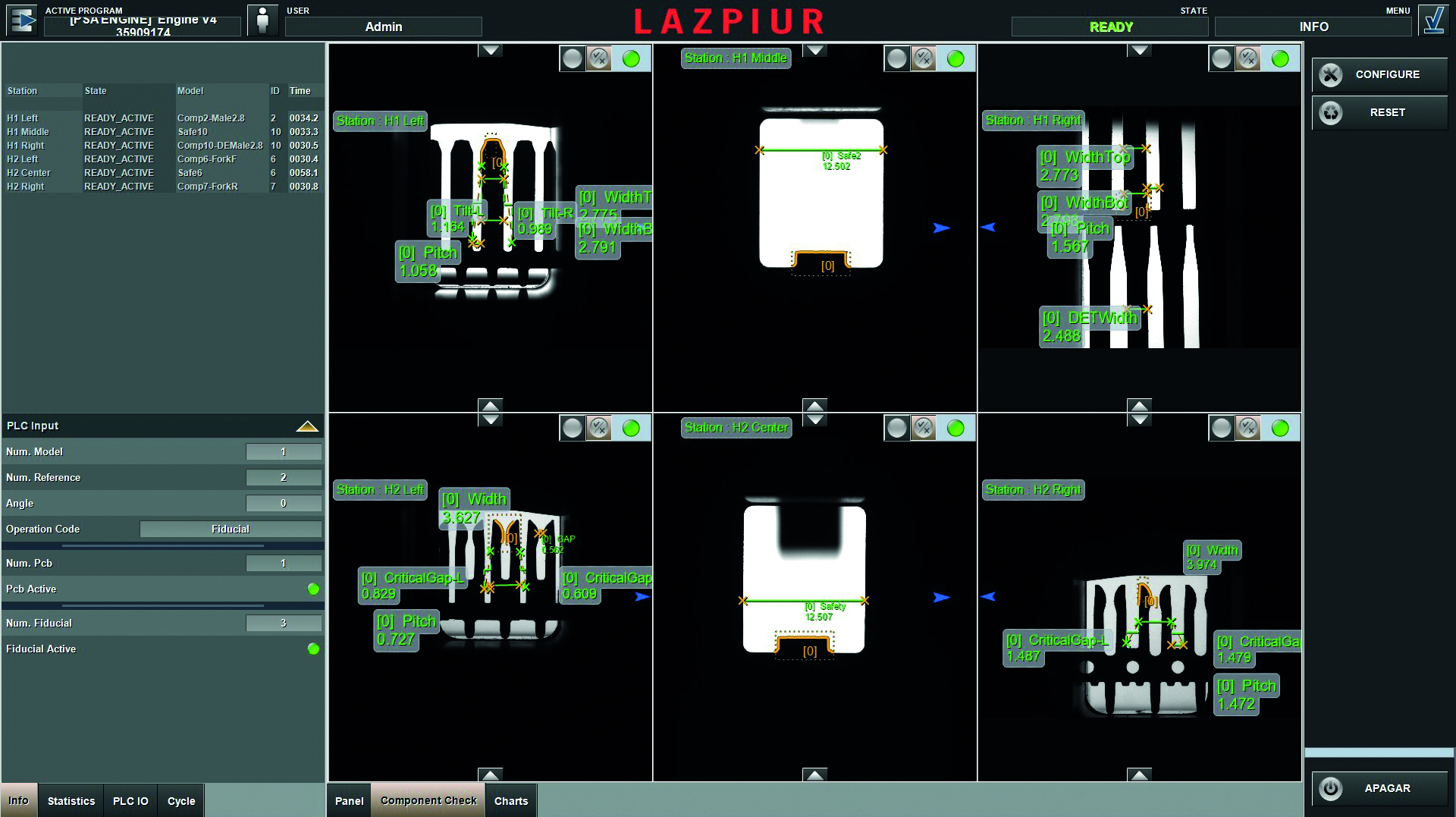 Vision inspection for both early detection of geometric material deviation and terminal symmetric cut-line inspection.